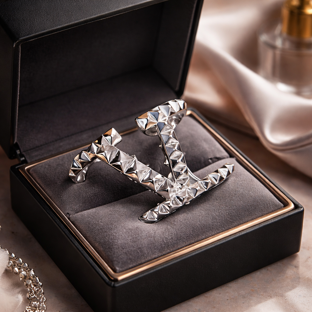 Inspired “Valentino” Silver Cuff Bracelet to add to your collection and stand out!